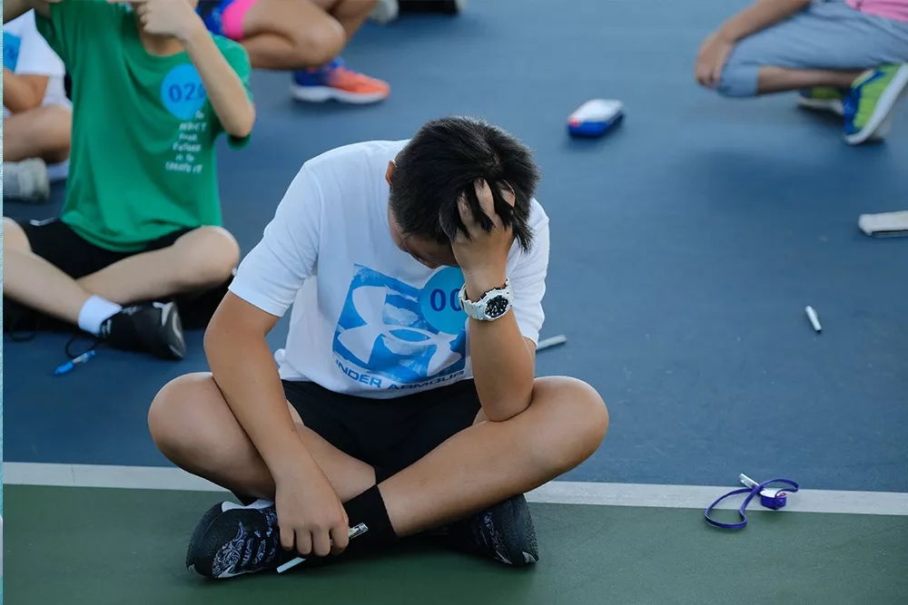 笔试题目都是最基本的网球知识,这位小选手一脸轻松,看来是准备充足,自信满满。